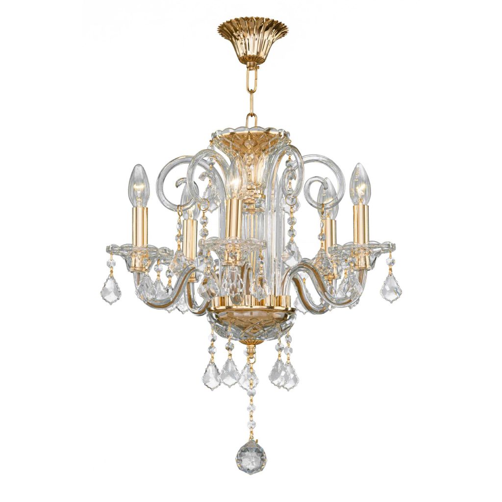 Crystal Chandelier 5 Bulbs Gold